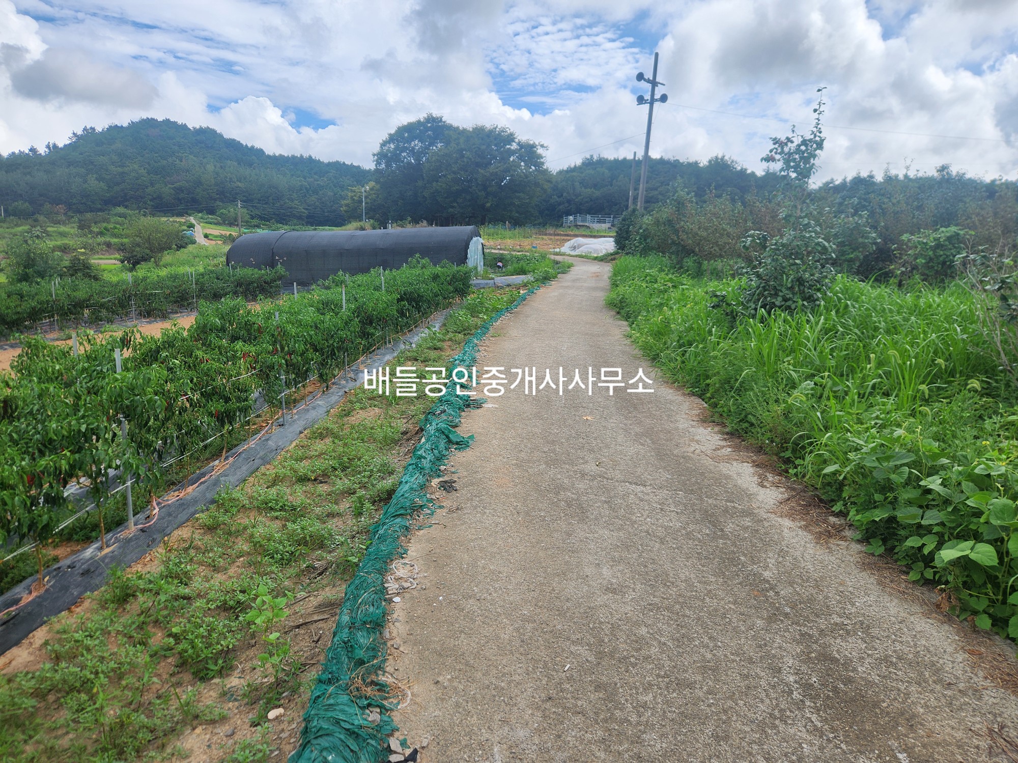농림지역, 가축사육제한구역(200m제한 소/말/젖소/사슴), 농업진흥구역의 전이고 지적 및 현황상 시멘트 포장 농로를 접하며 밭농사를 경작중이고 농업진흥구역이나 경지정리는 이루어지지 아니한 토지입니다.