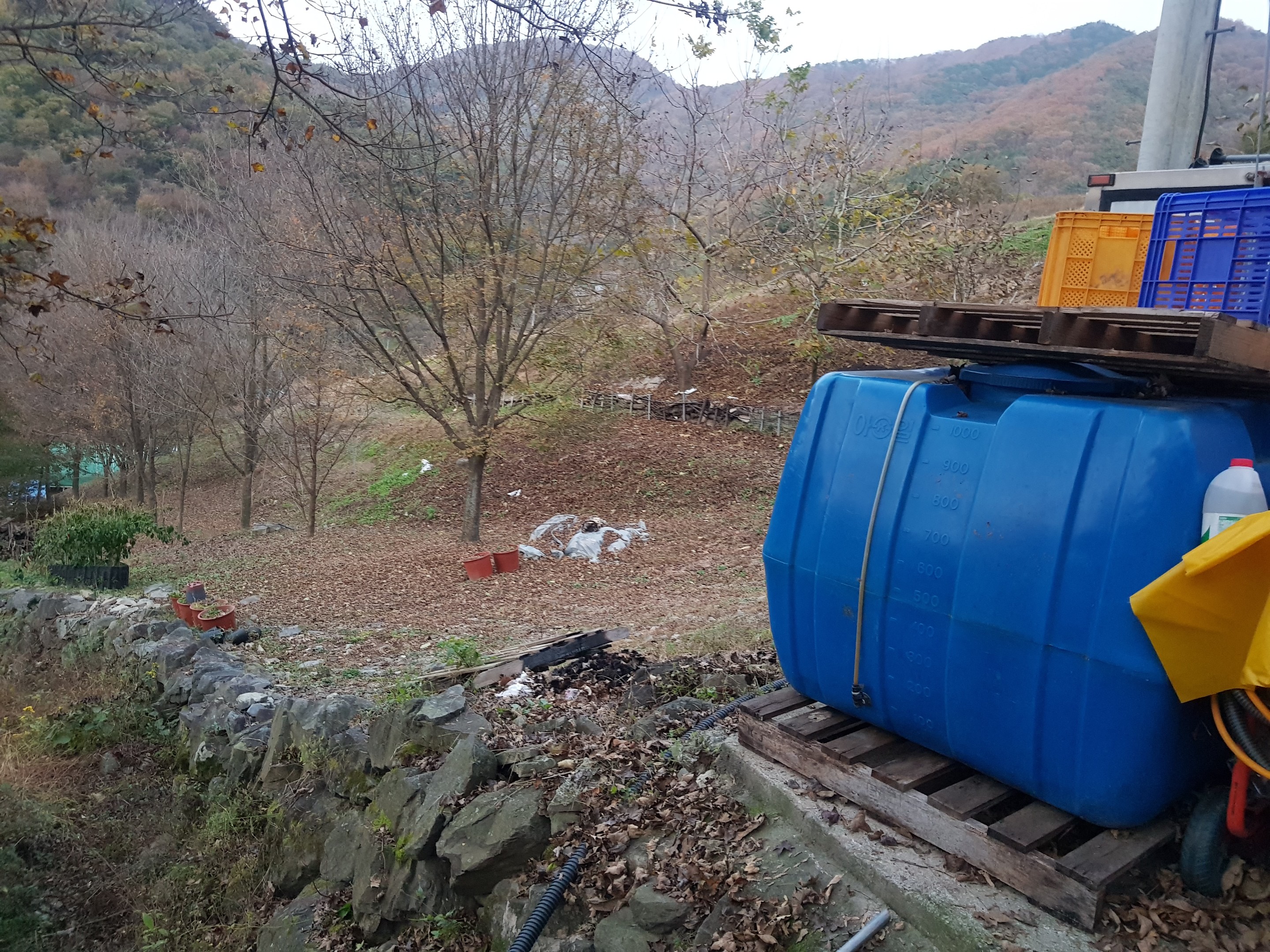 초입 부분에 약 33㎡(10평) 남짓 크기의 농막이 주방시설, 욕실 등을 완비한 원룸 구조로 지어져 있고