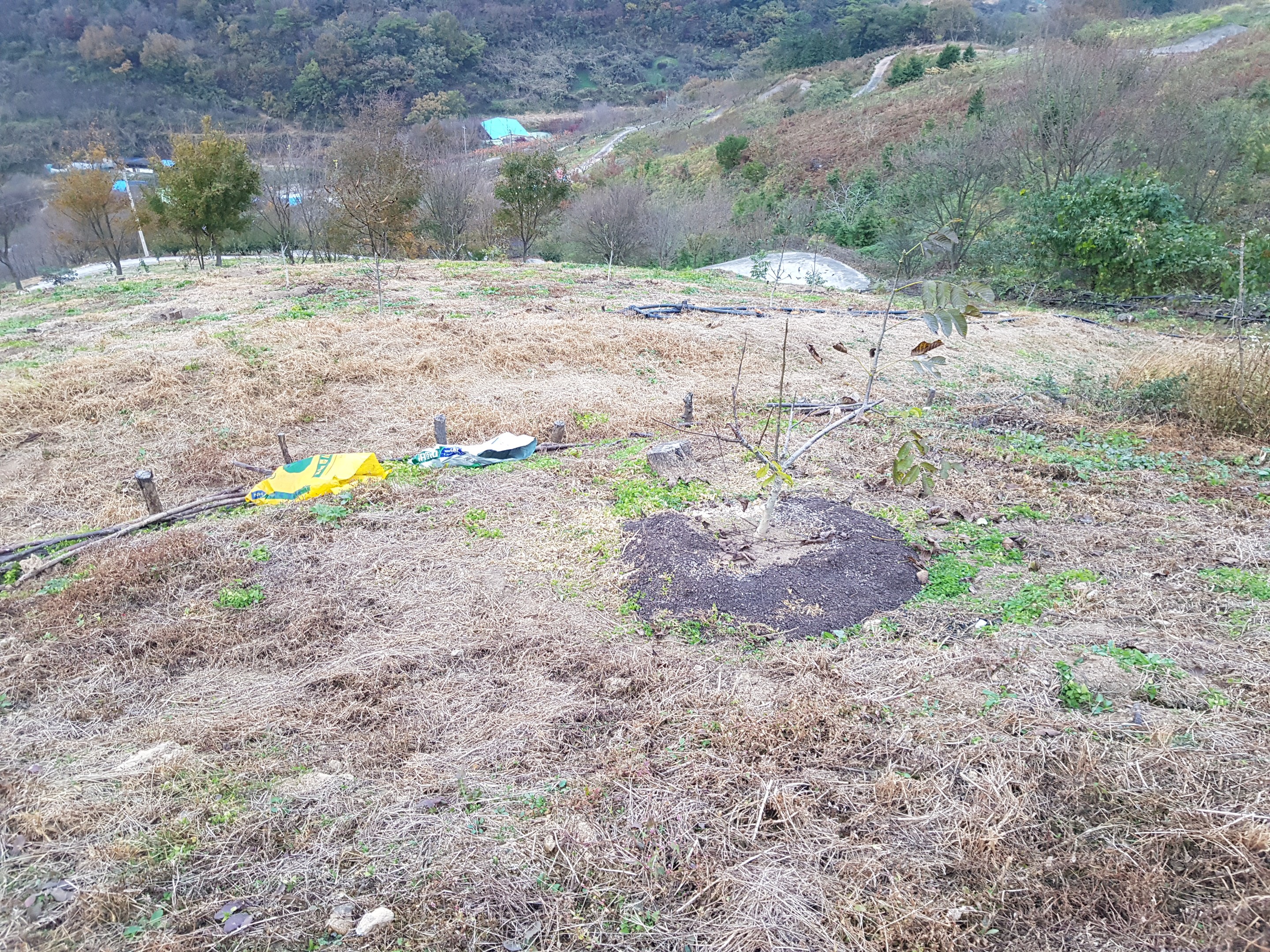 대부분의 토지가 개간되어 대봉감나무, 단감나무, 호두나무, 헛깨나무, 음나무, 돌배나무,